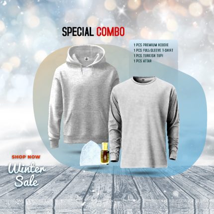 (Code 6394) ১টি প্রিমিয়াম হুডি, ১টি প্রিমিয়াম ফুলহাতা টি’শার্ট, ১টি টুপি, ১টি আতর (কম্বো প্যাক)