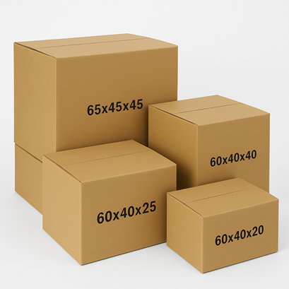 10 Pcs 3-Ply Brown Corrugated Carton Boxes – Mixed Sizes (65x45x45, 60x40x40, 60x40x25, 60x40x20 cm) for Heavy-Duty Packaging, Shipping & Storage