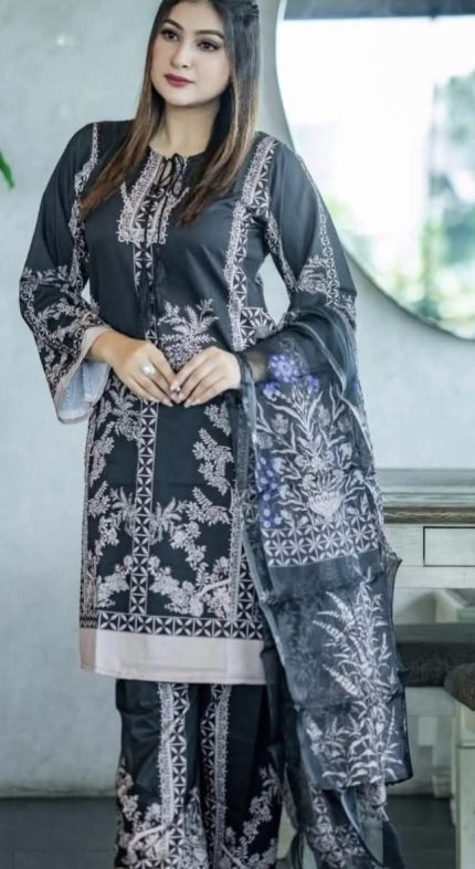 থ্রি পিস ফুল এমব্রয়ডারি