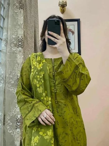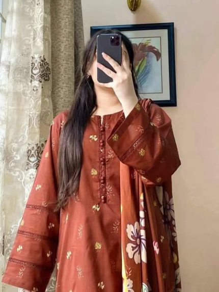থ্রি পিস ফুল প্রিন্ট ও লেস ওয়ার্ক