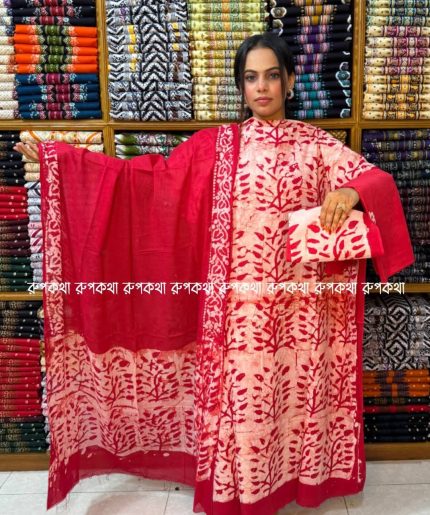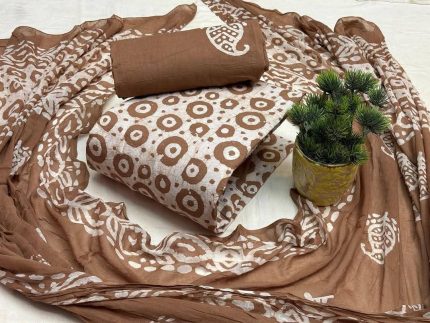 হাই কোয়ালিটি টারসেল প্লাস বোরিং কাজ করা বাটিক থ্রি পিস