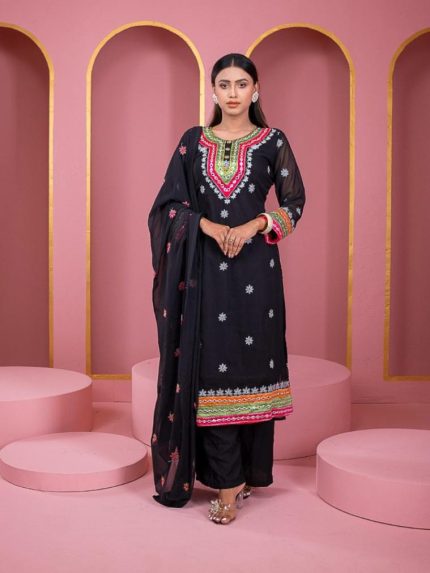 🧣 ওড়না: জর্জেট ফ্যাব্রিকের উপর আকর্ষণীয় এমব্রয়ডারি কাজ
