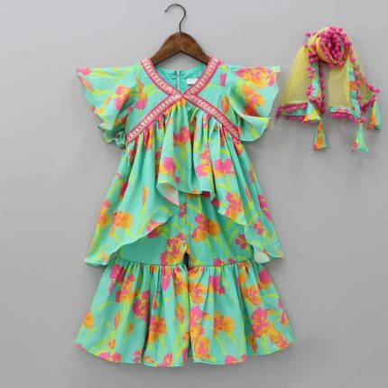 Flower Gown Elegant Floral Fit Dress for Girls with Belt