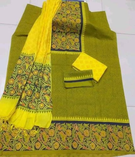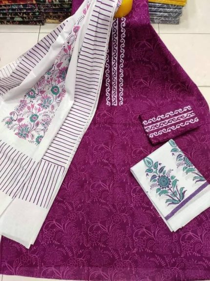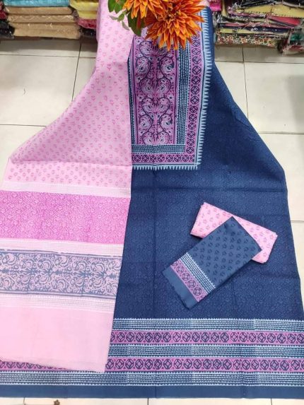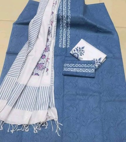 New Unstitched High Quality Cotton Block Print Three Piece For Women