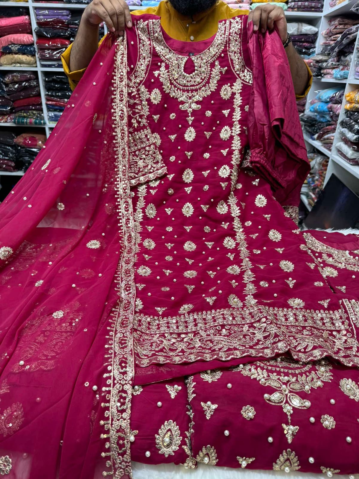 কাজ: সিকুয়েন্স এমব্রয়ডারি ও পার্ল ওয়ার্ক