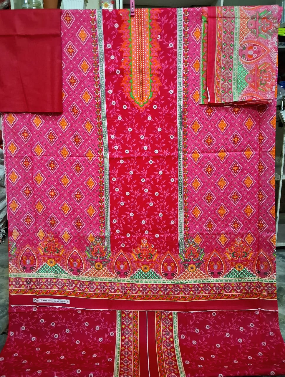 জমজম সুইচ কটনের ফেব্রিক্সের থ্রি পিস জামা সেলোয়ার কামিজ ওড়না এগুলো আরামদায়ক হবে