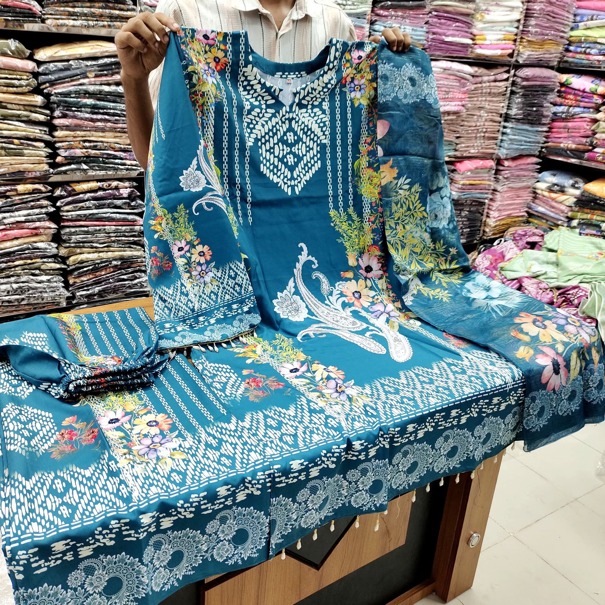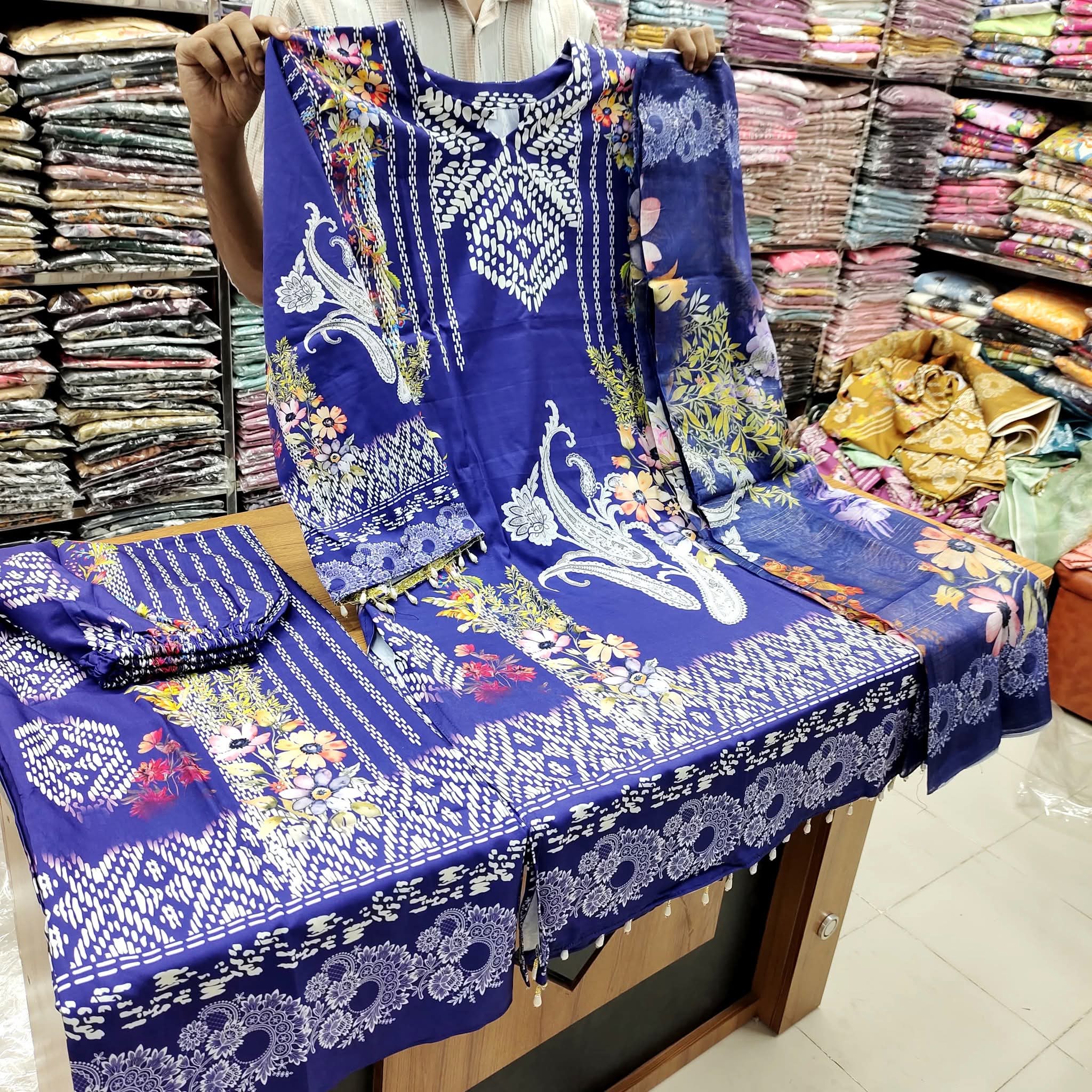 মিশরে সিল্ক ফেব্রিক্স এমব্রয়ডারি ওয়ার্ক করা থ্রি পিস
