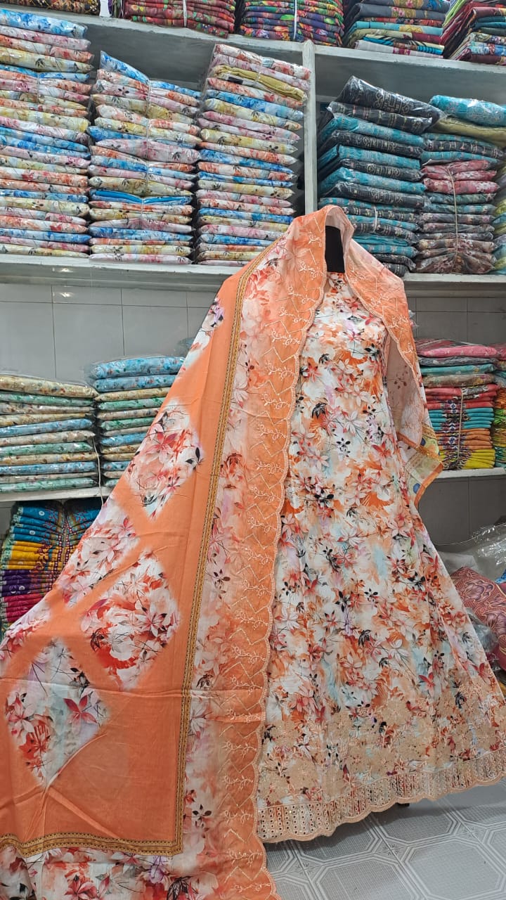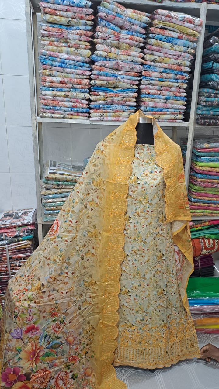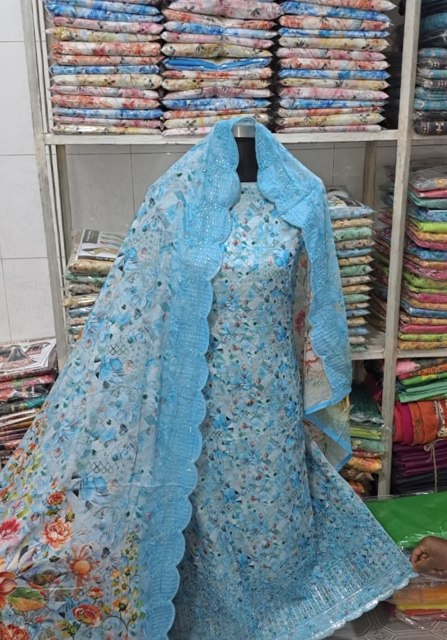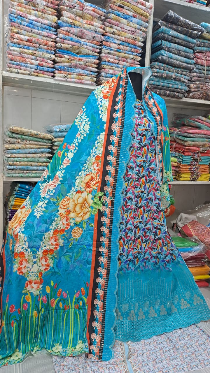 আনরেডি পোশাক আইটেম সেলোয়ার-কামিজ + ওড়না , সুতি চিকেন কারী কাজ করা
