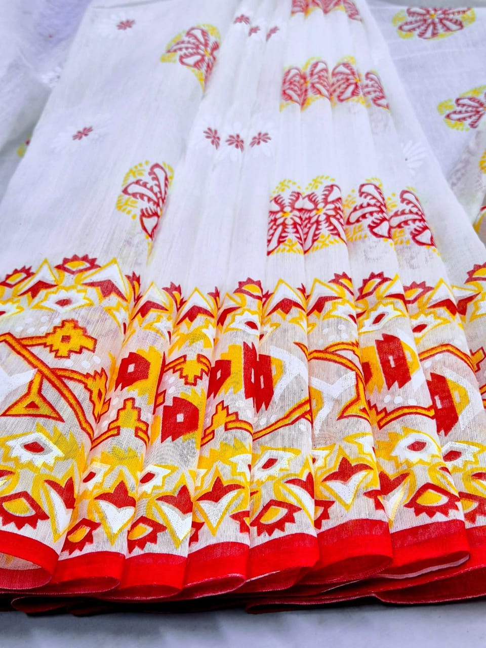 পিওর আড়ং কটন নকশী পাইর শাড়ী, ১৩.৫ হাত শাড়ী রানিং ব্লাউজ পিস আছে সাথে