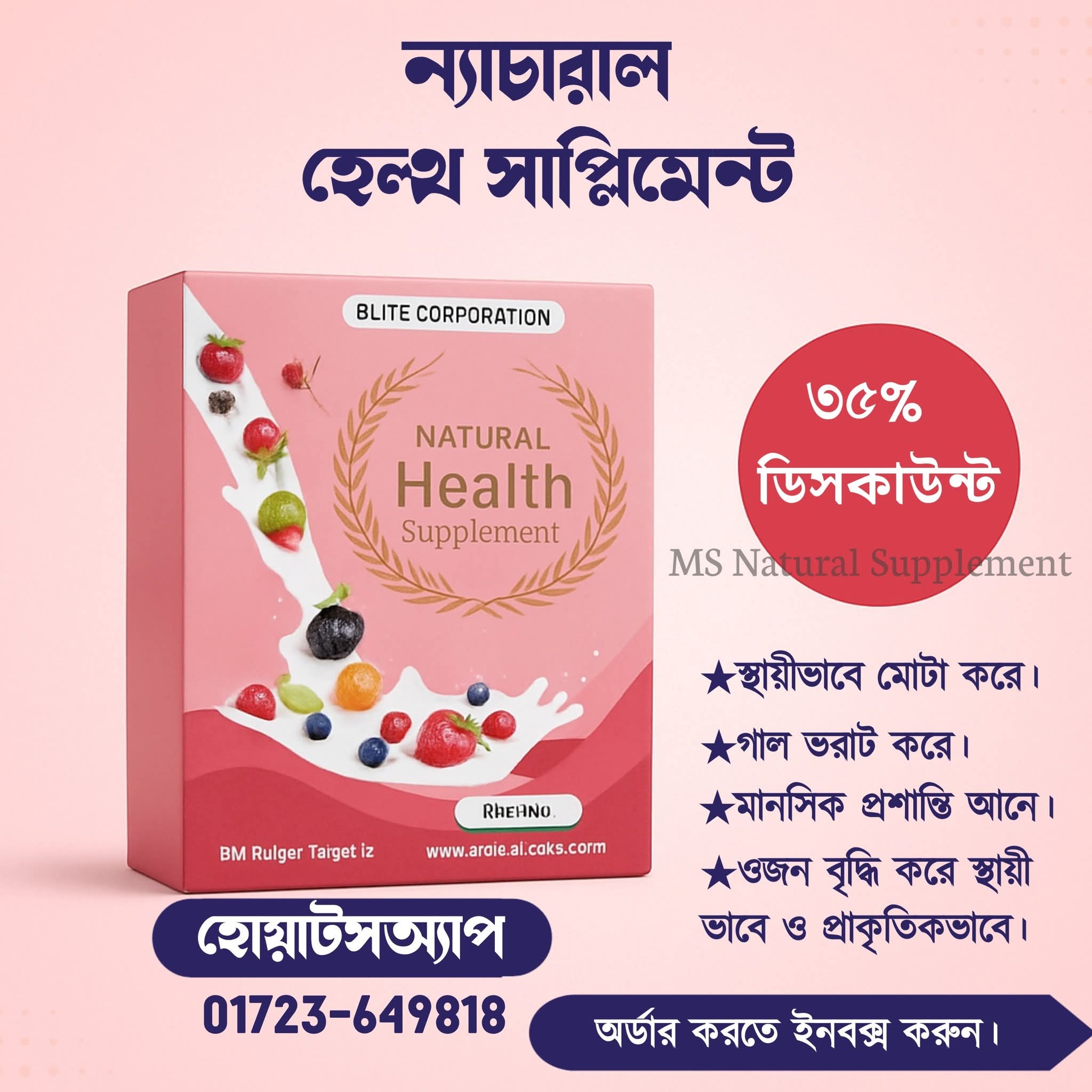 1️⃣ প্রাকৃতিকভাবে ওজন বৃদ্ধি করে – ❌ কেমিকেল নয়, ✅ প্রাকৃতিক উপাদানে তৈরি, তাই ওজন বাড়ে ধীরে ধীরে এবং স্থায়ীভাবে।