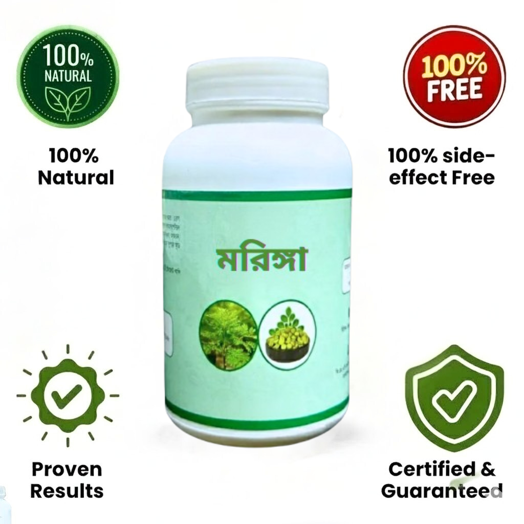মরিঙ্গা বিশ্বব্যাপী পরিচিত তার অসাধারণ পুষ্টিগুণ ও রোগ প্রতিরোধ ক্ষমতার জন্য। আমরা এই দুর্লভ ভেষজ-কে এনেছি সহজে সেবনযোগ্য, কার্যকর ও ১০০% প্রাকৃতিক ট্যাবলেটের রূপে। এটি সম্পূর্ণ ভেষজ নির্যাস ব্যবহার করে প্রস্তুতকৃত।