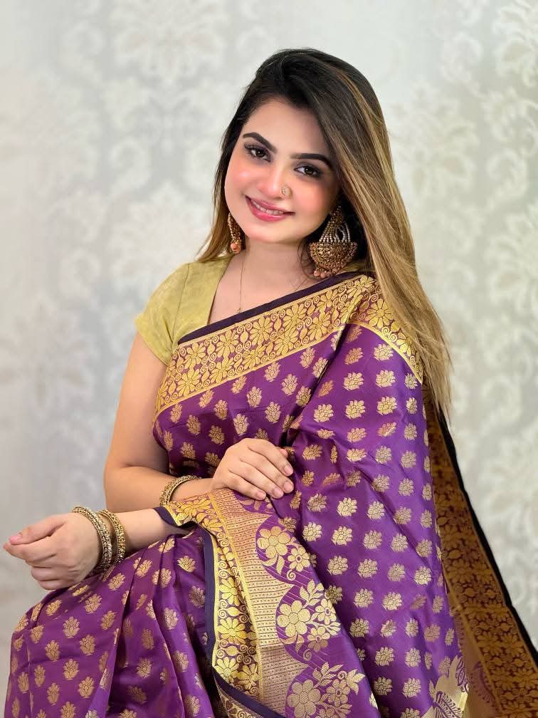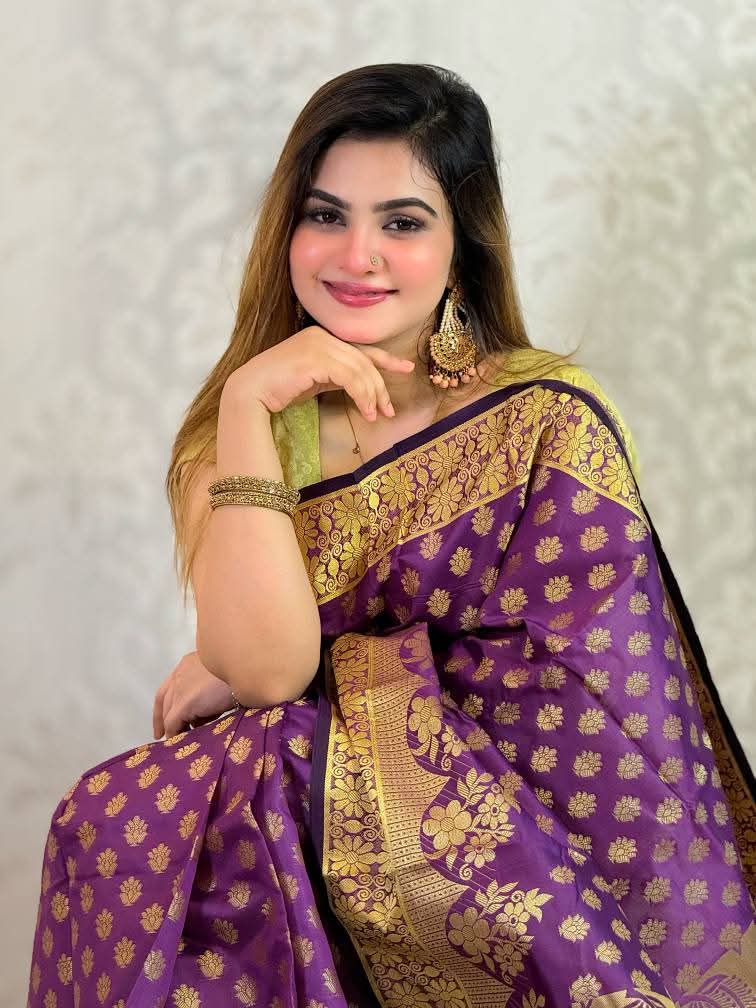 🎨 কালার: রয়্যাল পার্পল (বেগুনি) উইথ গোল্ডেন জরি