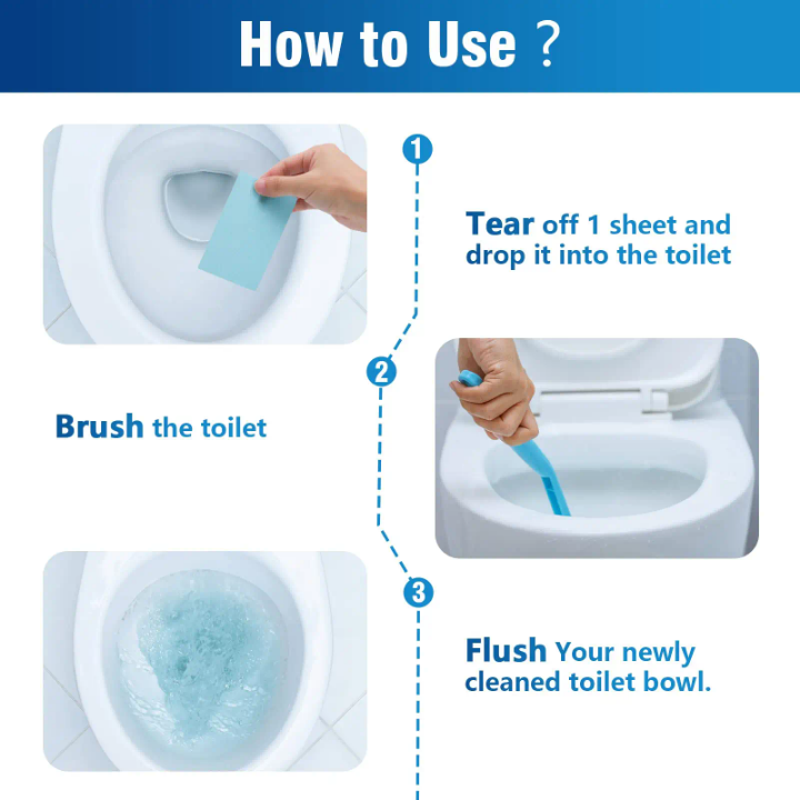 30 পিস মাল্টি ইফেক্ট ফাস্ট অ্যাকশন ডিপ ক্লিনিং স্টেইন বাথ্রুম ও টয়লেট ক্লিনার পেপার শিট