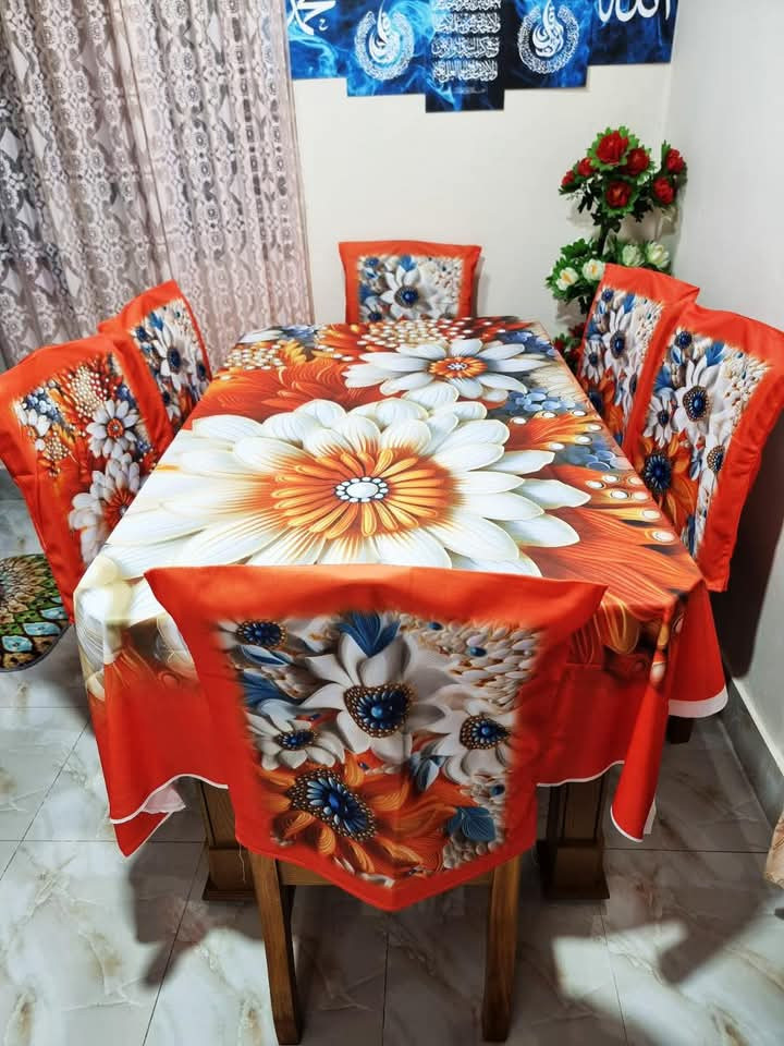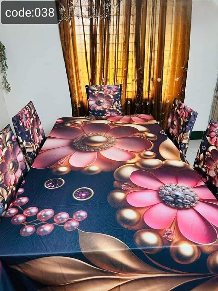 🌺ডিজিট্যাল থ্রিডি প্রিন্টের নতুন সব ডিজাইনের প্রিমিয়াম কোয়ালিটির টেবিল ক্লথ এবং ৬ পিছ চেয়ার কাভার থাকবে।🌺