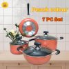 7 PC Set Gray Marbel, Brown Marbel, Red Marbel, Olive, Merun, Peach & Red Color , Black Color (Induction Bottom), Brown Marbel (Induction Bottom)