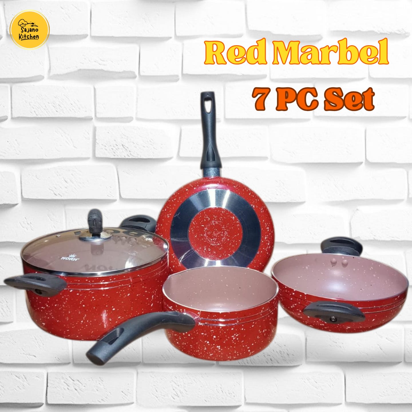 7 PC Set Gray Marbel, Brown Marbel, Red Marbel, Olive, Merun, Peach & Red Color , Black Color (Induction Bottom), Brown Marbel (Induction Bottom)