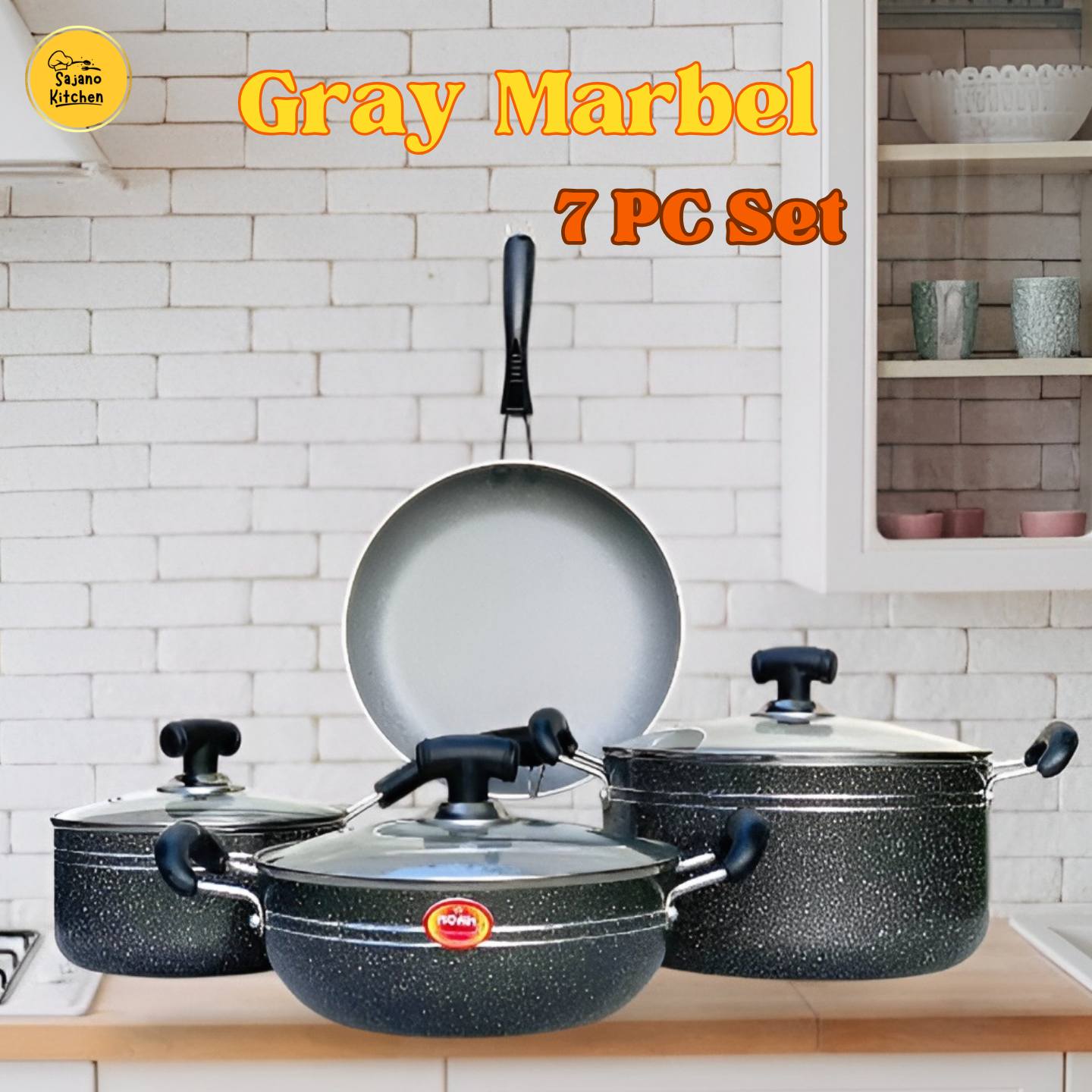 7 PC Set Gray Marbel, Brown Marbel, Red Marbel, Olive, Merun, Peach & Red Color , Black Color (Induction Bottom), Brown Marbel (Induction Bottom)