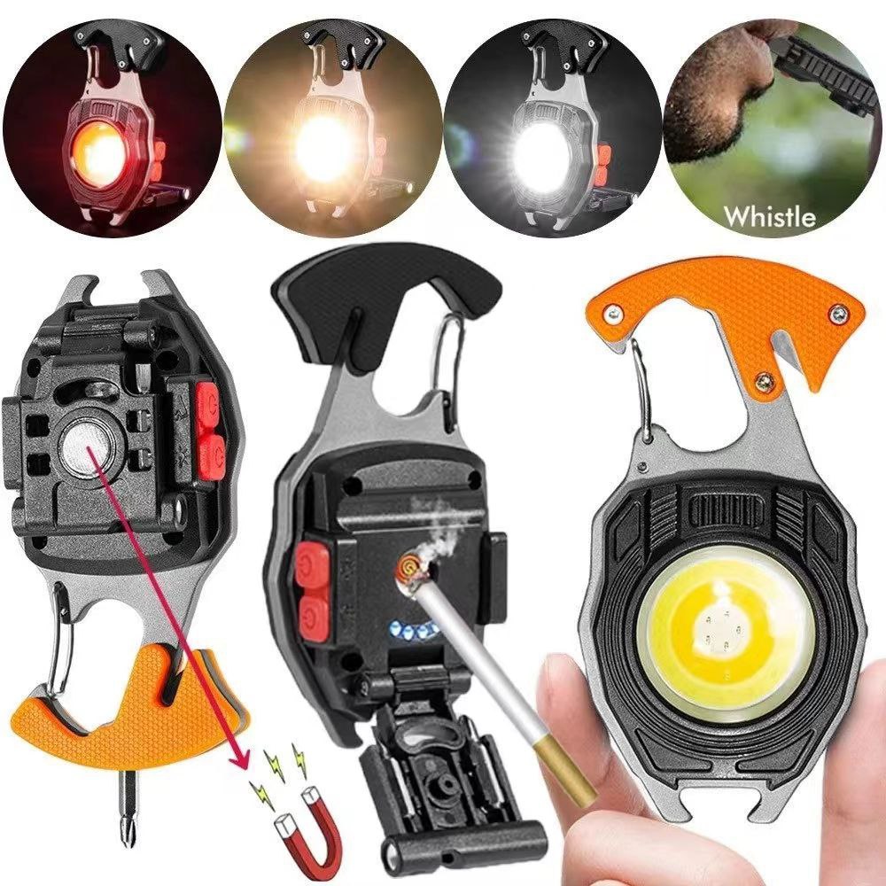 8in1 Multifunctional Keychain COB Light with Screwdriver and Lighter