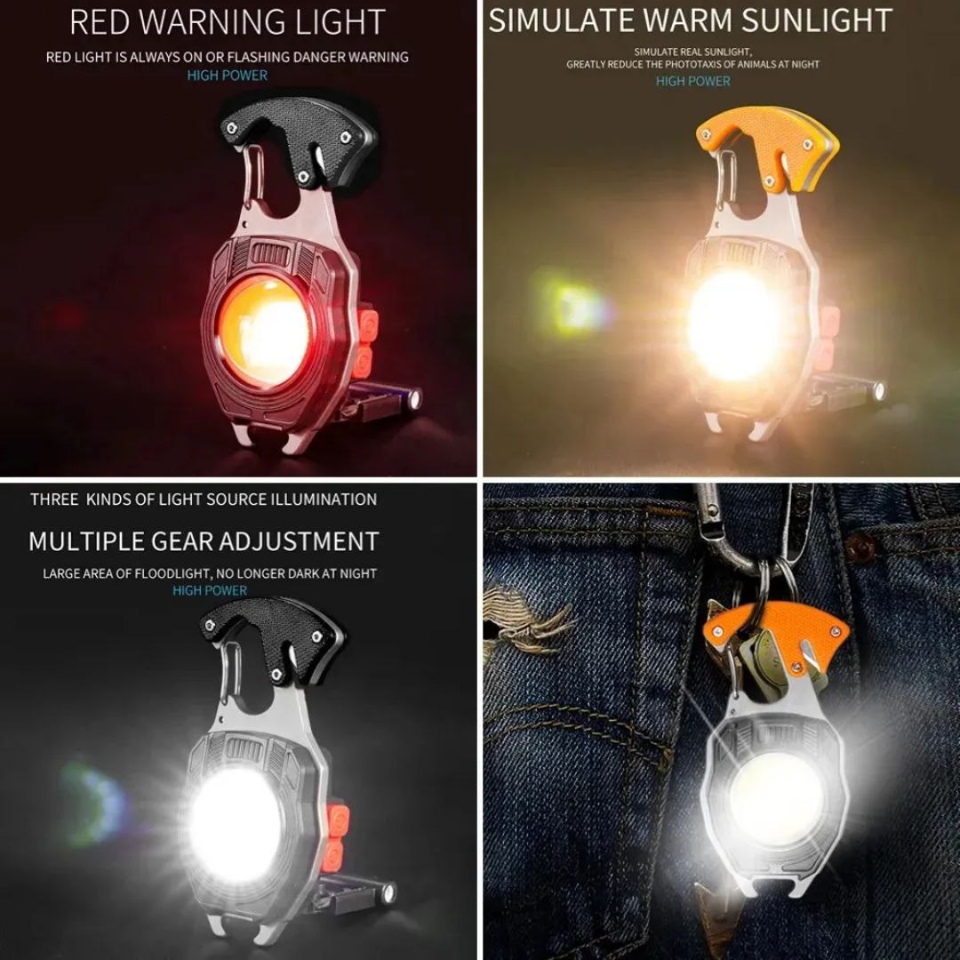 8in1 Multifunctional Keychain COB Light with Screwdriver and Lighter