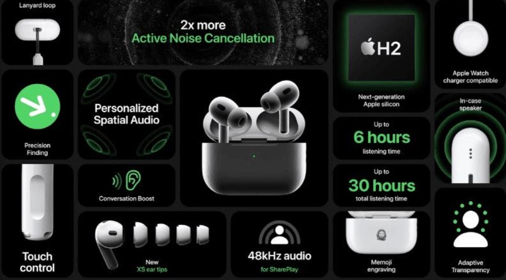 AirPods Pro 2nd Generation- an all-new version of AirPods that is re-engineered to deliver you an enriching and ultimate audio experience. In terms of features, it comes with significant ANC, spatial audio, upgraded touch control, and a whole lot more. A brand new polishing outlook makes it more eye catchy.