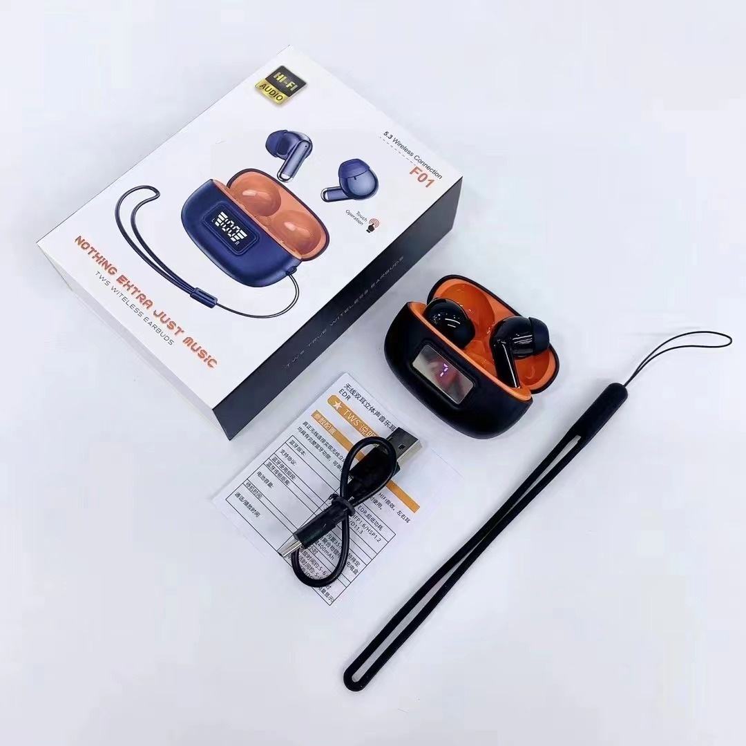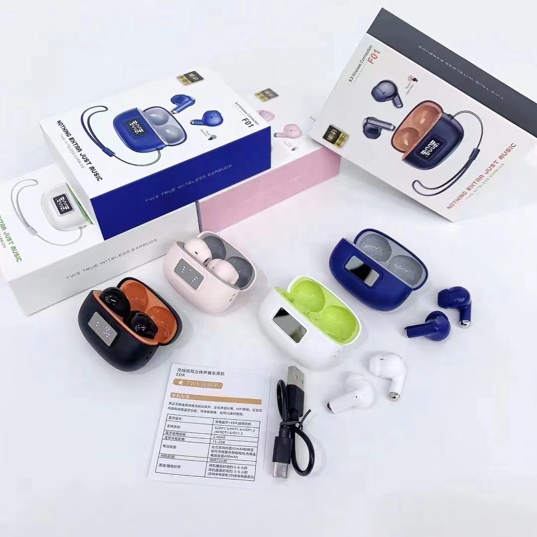 F01 Newest Tws True Wireless BT 5.3 Macaron Headphones Digital Hifi Stereo Low-latency Gaming Sports Headset With Lanyard f01