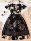 Home ফ্যাশন বাচ্চাদের ফ্যাশন Flower Gown Elegant Floral Fit Dress for Girls with Belt