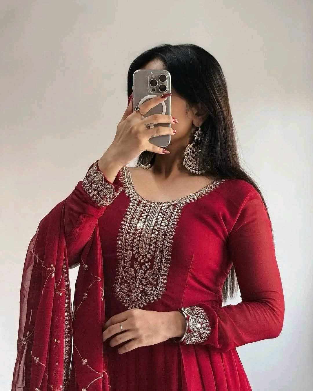 Pure jorjet with embroidery and sequence work readymade 3 pics gown