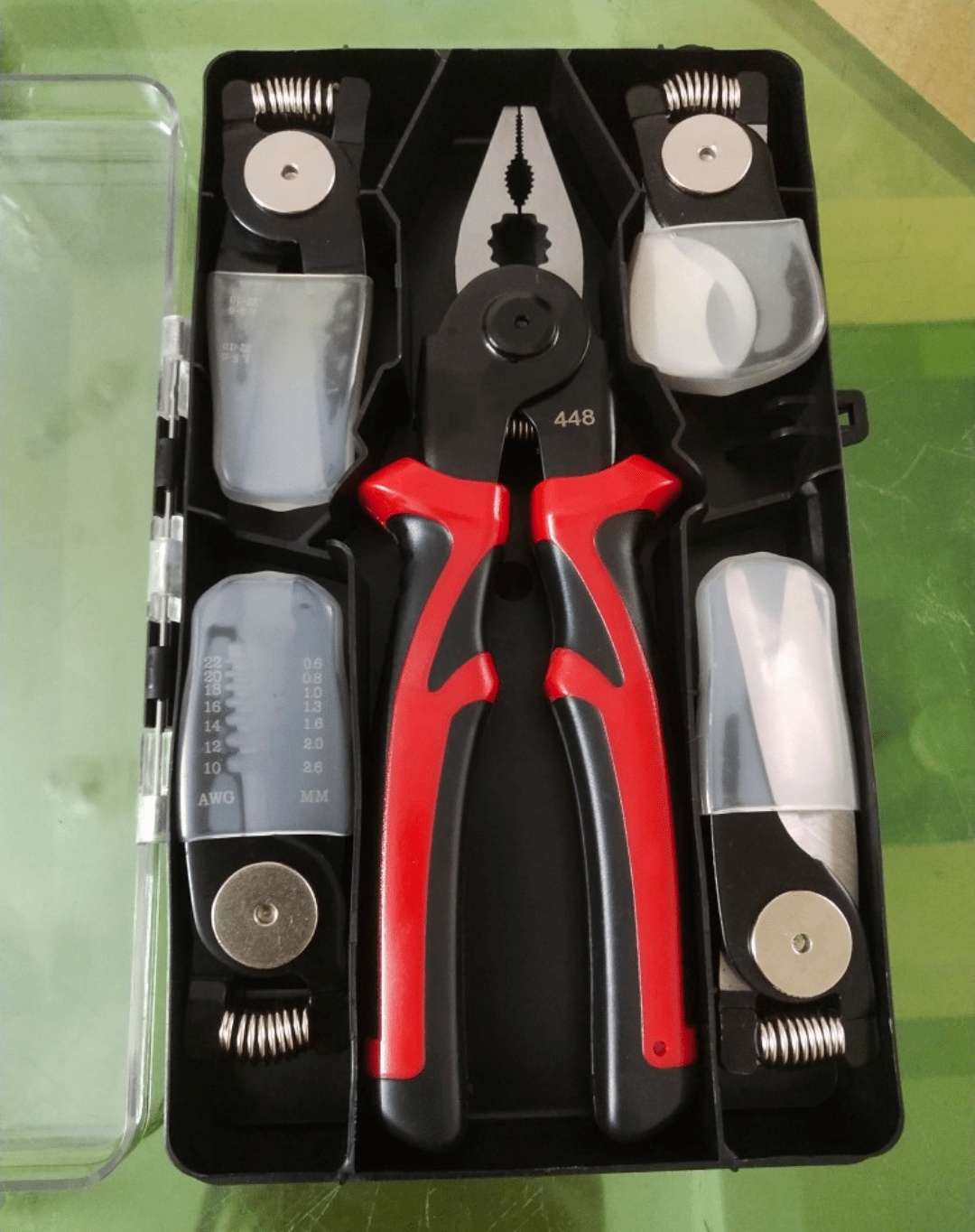 - Wire cutter – wire stripper – crimping pliers – iron pliers + cable cutter