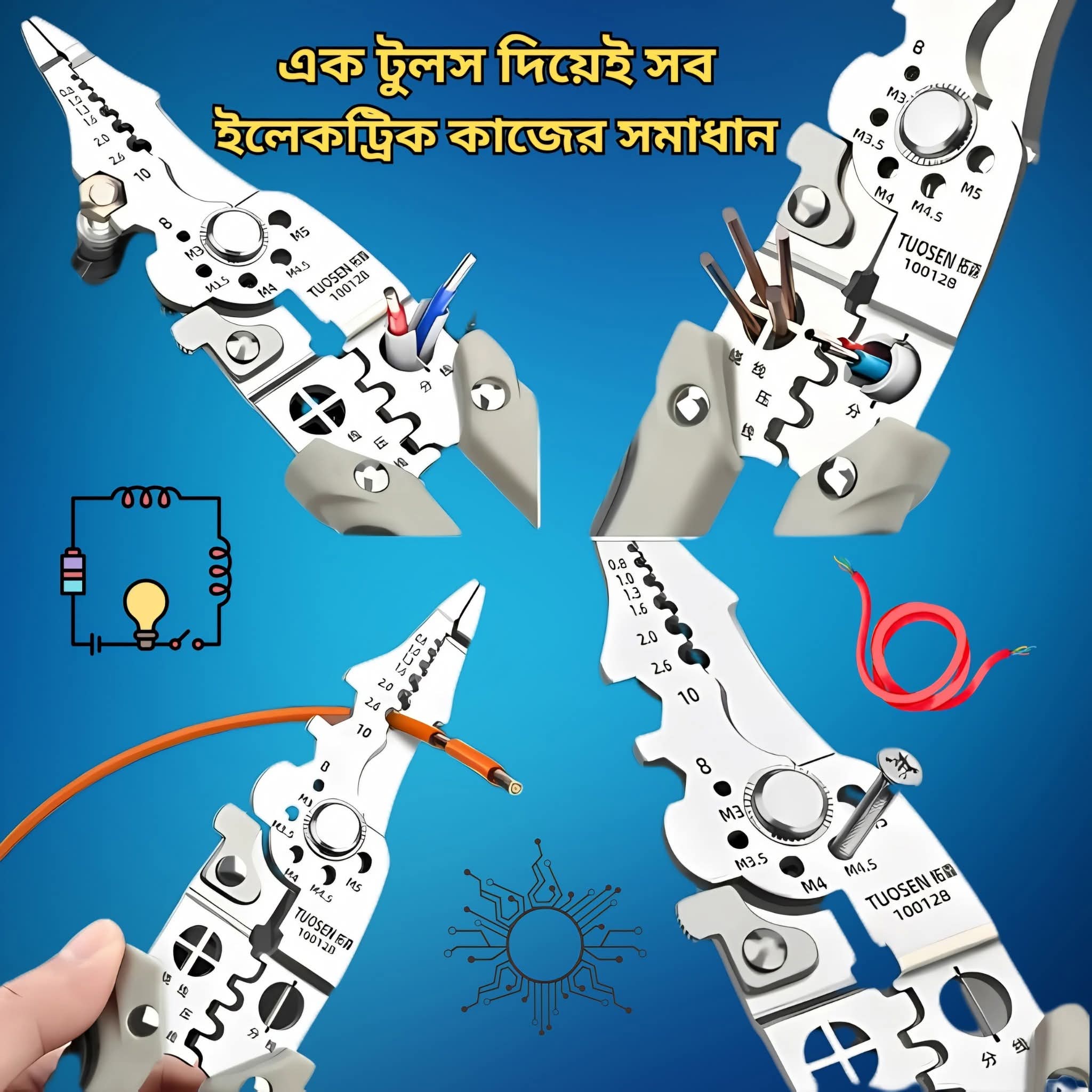 ✅ব্যবহারিক মাল্টি-ফাংশন টুল: তারের কাটা, স্ট্রিপিং, ক্রাইম্পিং, উইন্ডিং, স্প্লিটিং, ক্ল্যাম্পিং এবং রেঞ্চিং এর মতো বিভিন্ন ইলেকট্রিশিয়ান অপারেশন প্রয়োজনীয়তা পূরণ করে!
