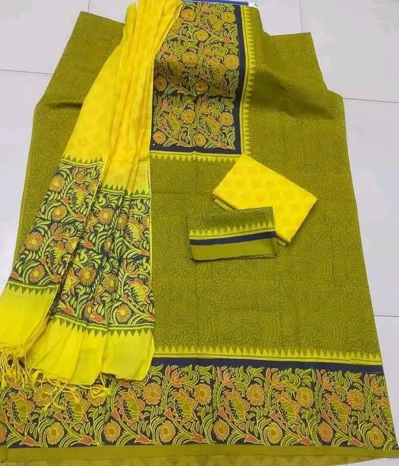 Home ফ্যাশন মহিলাদের ফ্যাশন New Unstitched High Quality Cotton Block Print Three Piece For Women