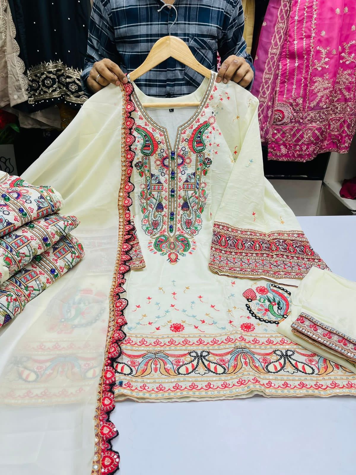 orna- pure jorjet with secuenc work and cut work 5 hat