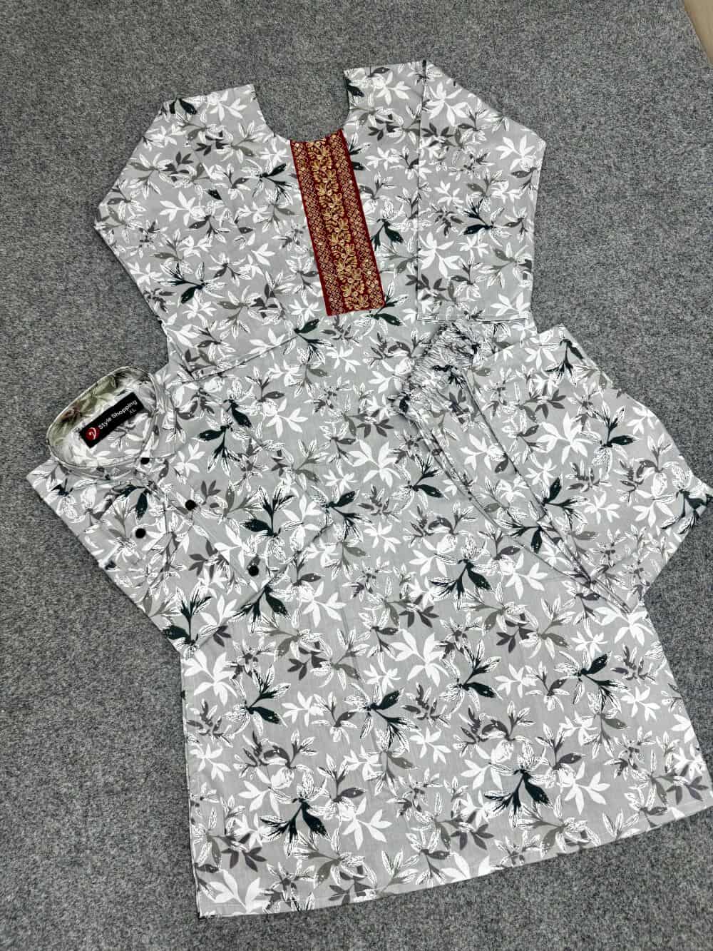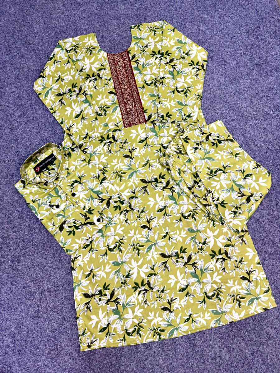 ম্যাচিং জামা+পায়জামা+শার্ট।