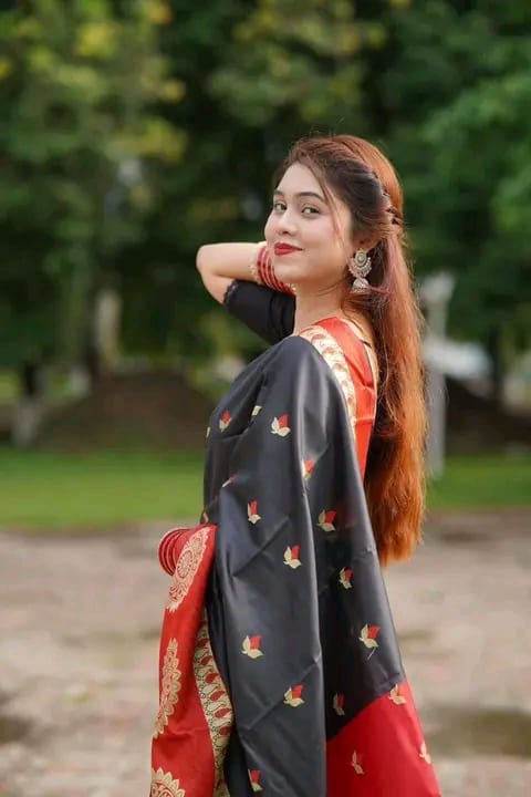 – ব্লাউজ পিস দেওয়া নেই। আপনি ইচ্ছামতো যেকোনো কনট্রাস্ট বা ম্যাচিং ব্লাউজের সাথে এই শাড়ি পরতে পারেন।