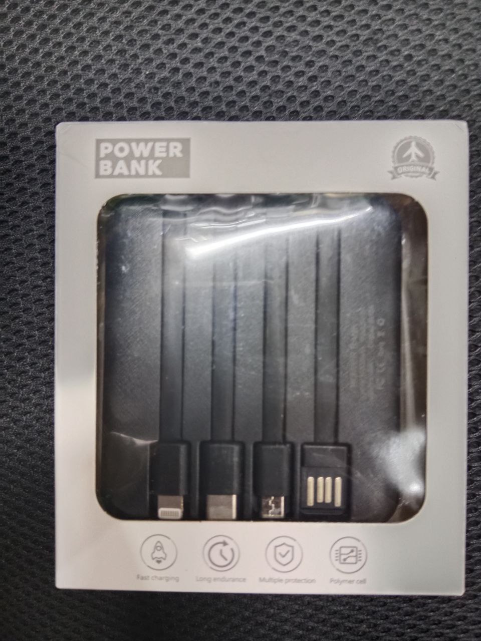 • 10000mAh Solar Power Bank with 4 Built-in charging cables