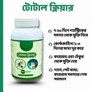 টোটাল ক্লিয়ার। গ্যাস এবং কষা পায়খানার ন্যাচারাল ভেষজ ঔষধ।830.00৳ Original price was: 830.00৳ .525.00৳ Current price is: 525.00৳ .